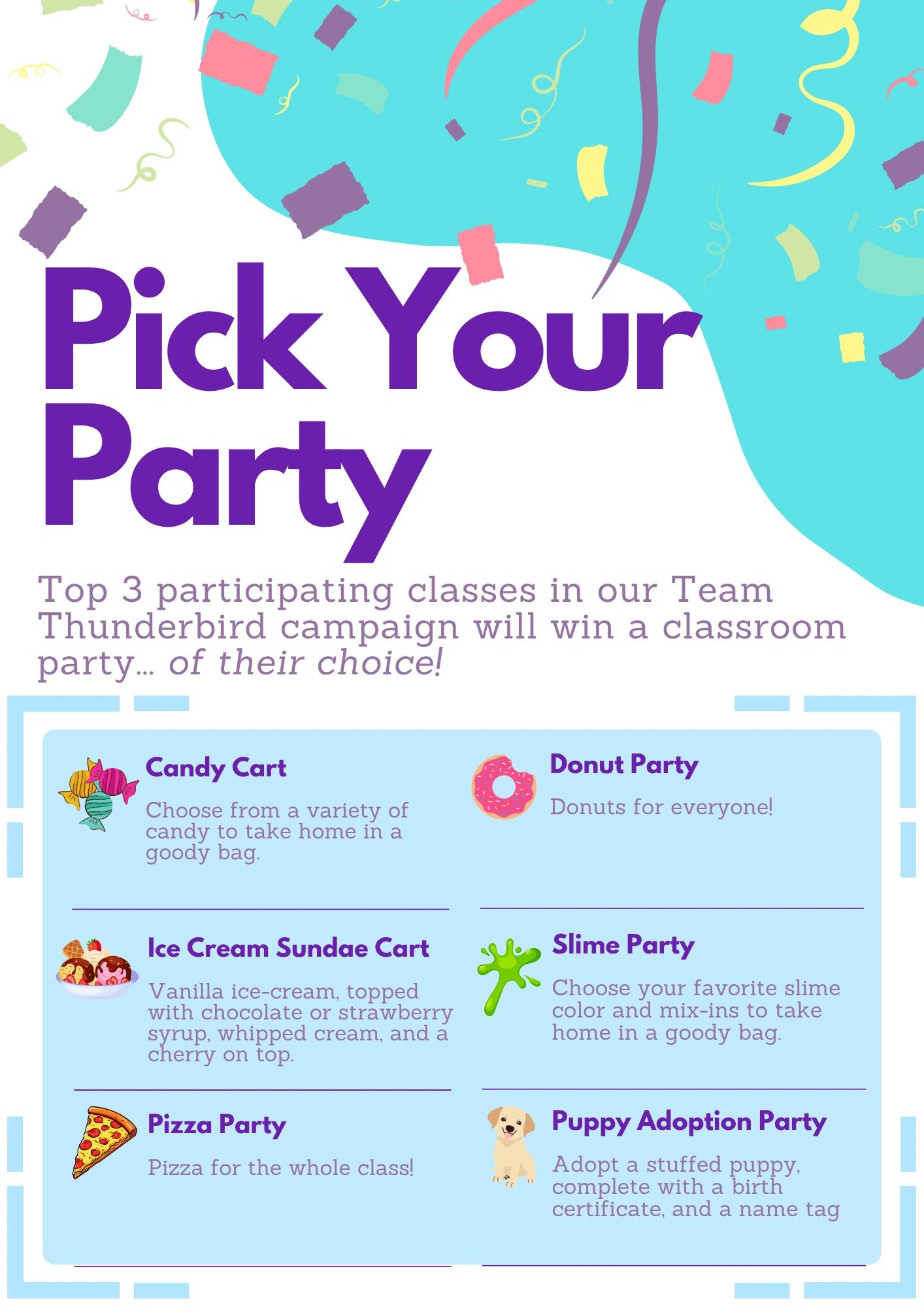 Reminder: Team Thunderbird is separate and distinct from Classroom Support Funds (CSF). CSF provides your classroom teacher with the funds to support classroom specific initiatives, as planned by each grade level.